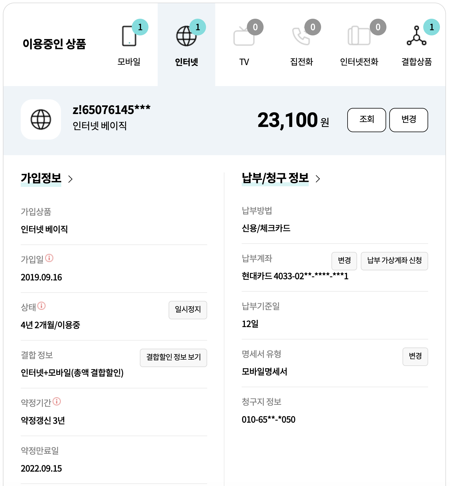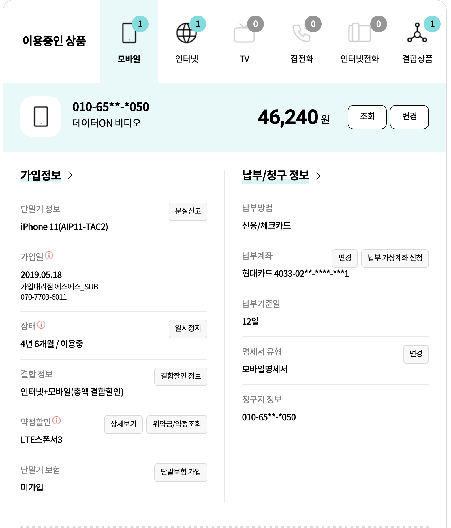 3. 가족과의 결합은 기간 문제로 향후 변경될 여지가 있어 우선은 고려하지 않고 본인 휴대폰 및 인터넷 결합할인으로만 진행 부탁 드립니다.