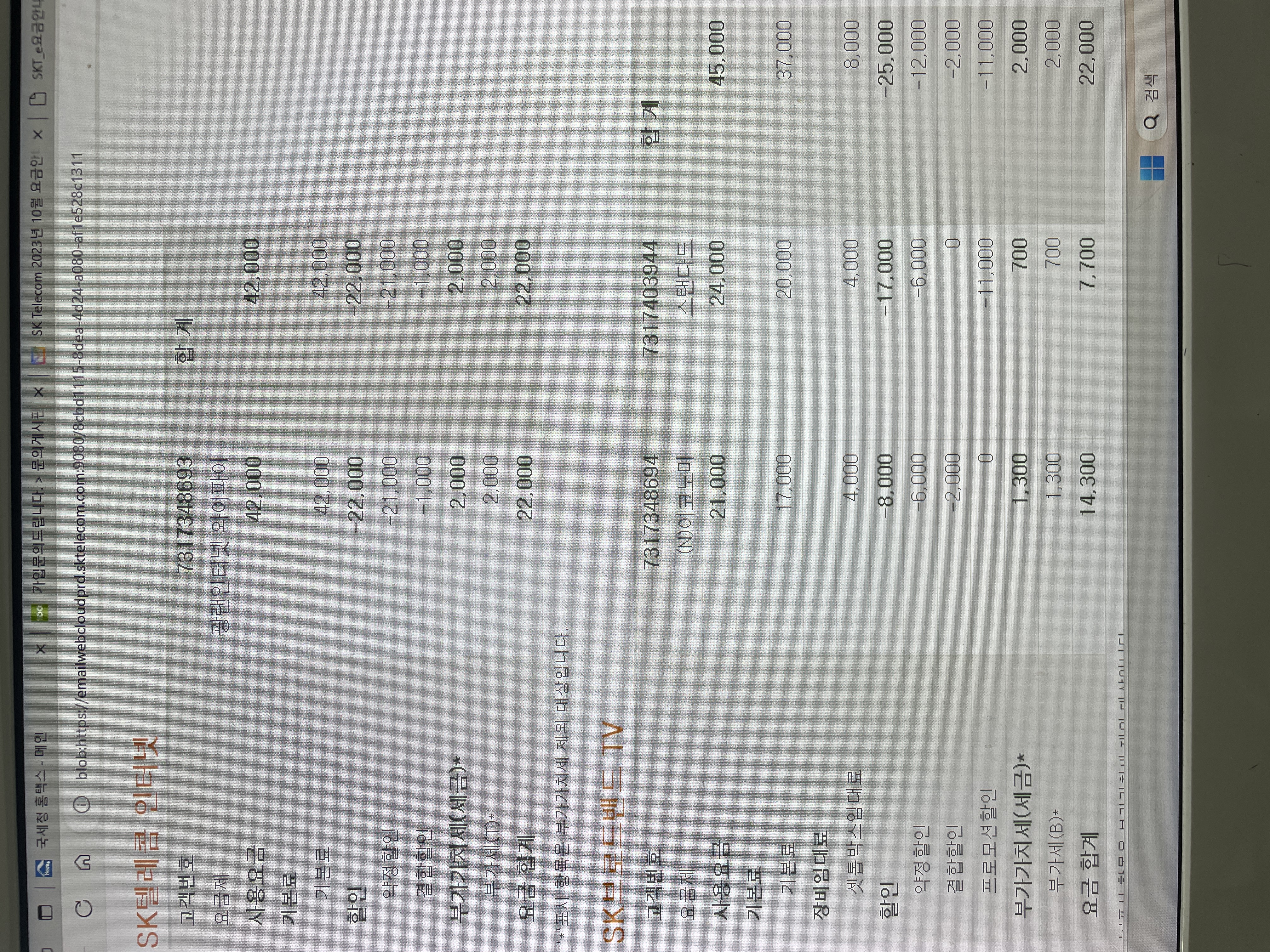 자택에서 사용하시는 SK 인터넷과 IPTV 2대 약정이 끝나