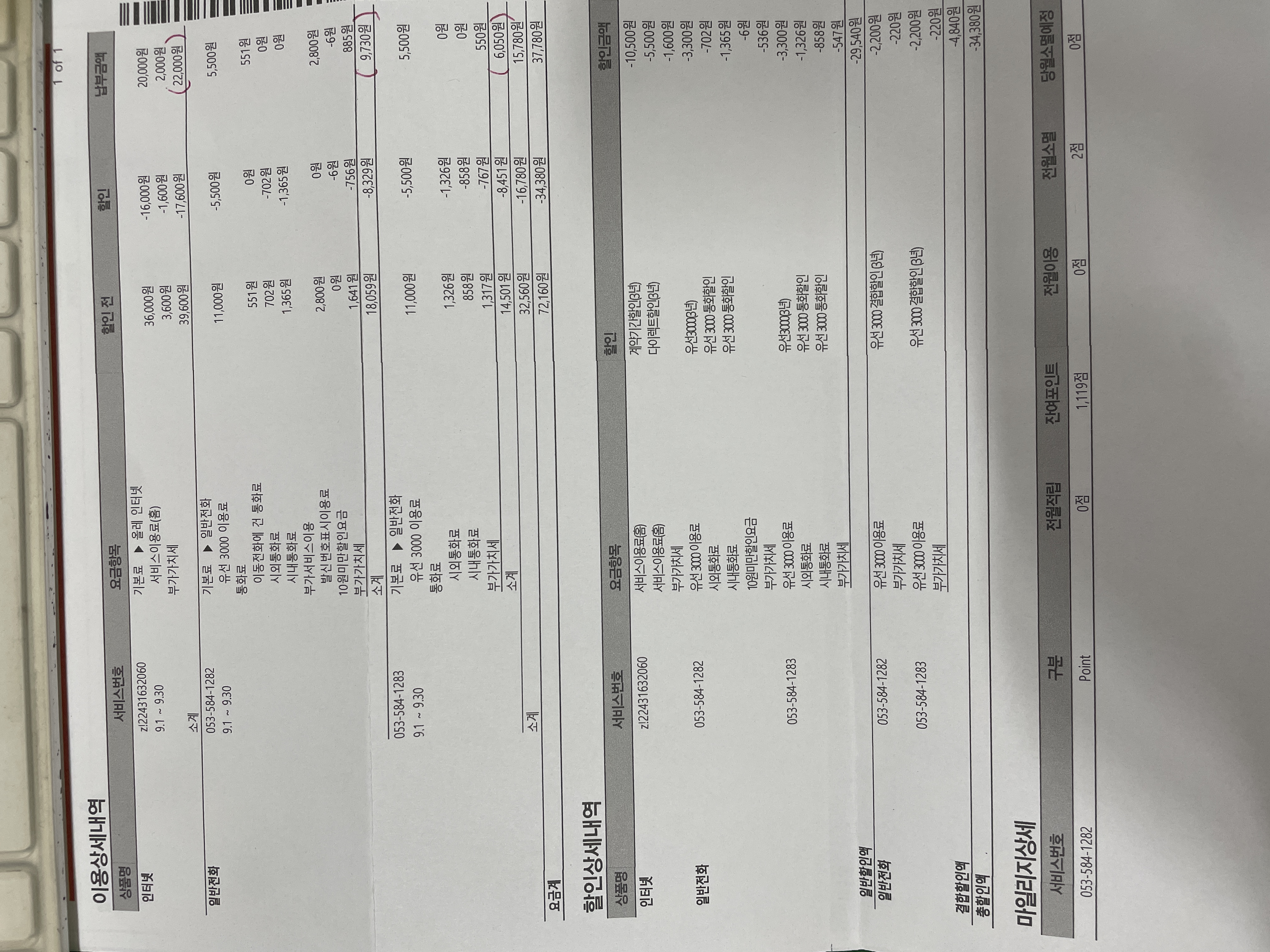 3. 요금 고지서를 살펴보니... 일반전화에서 결합으로 할인이 들어가는 내역은 없어 보입니다 ㅎㅎ