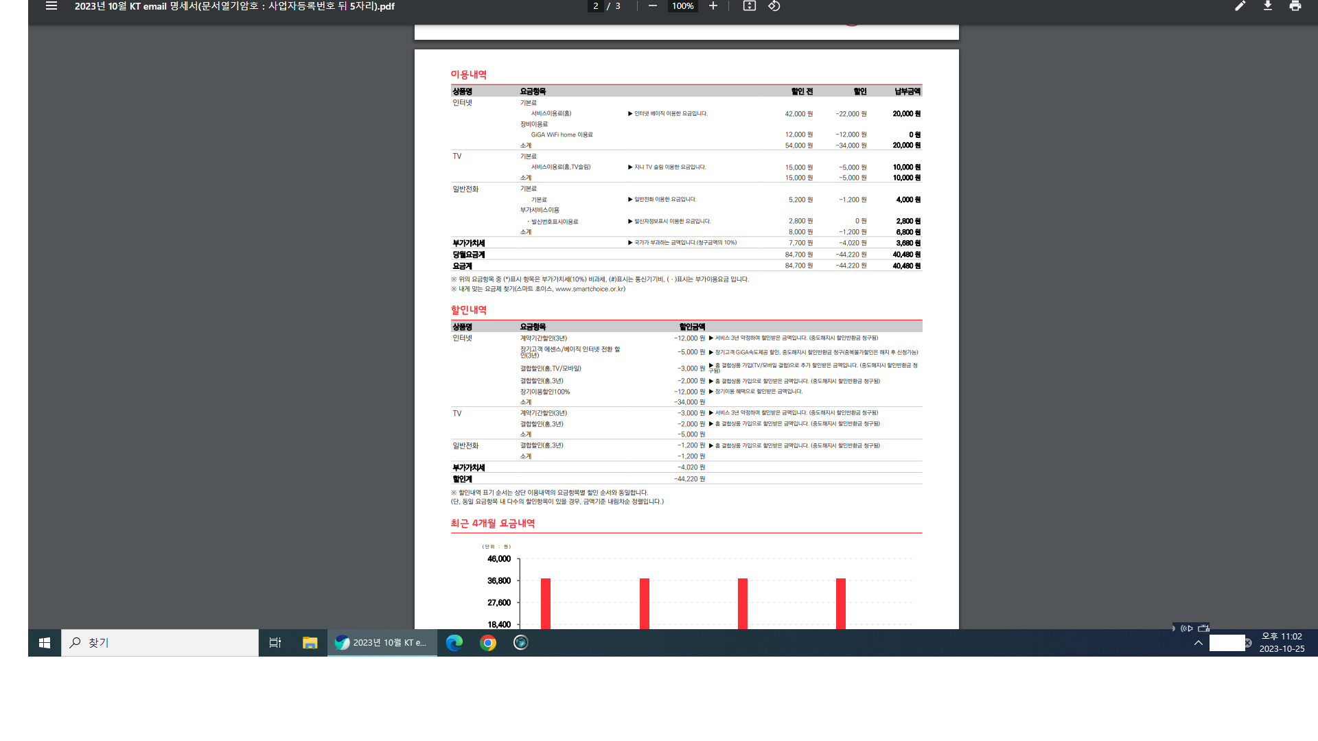 띄워주신 요금고지서를 보면 인터넷쪽에 5,500원 할인이 적용되있는데,
