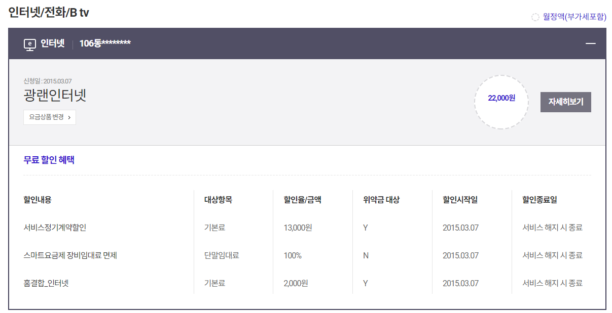 ※ SK브로드밴드에서 조회시에는 BTV만 조회되고 인터넷은 안뜨네요 아마도 SK.....T 같습니다.