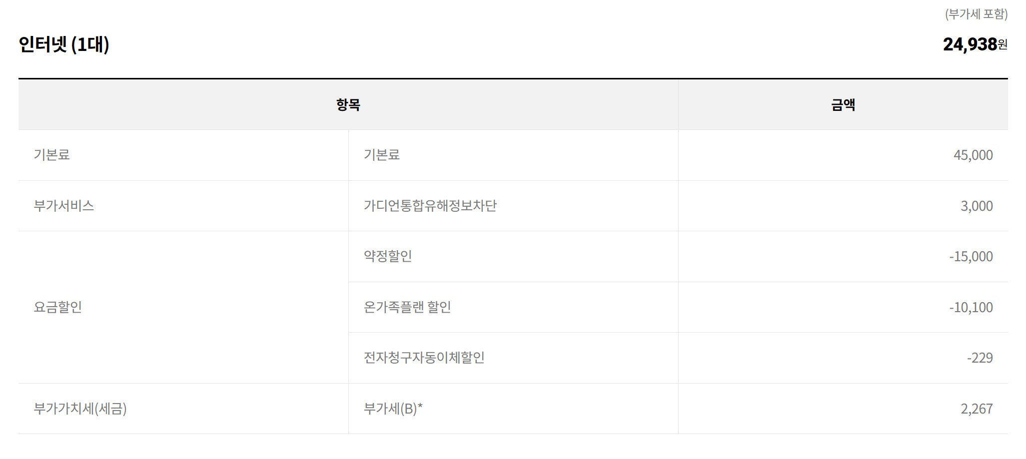 - SK 500메가급 인터넷 월요금 : 23,100원