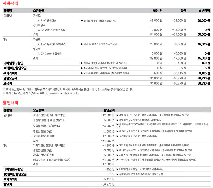 이와 별개로 휴대폰 요금에서도 총 -12,100원의 할인이 적용되니