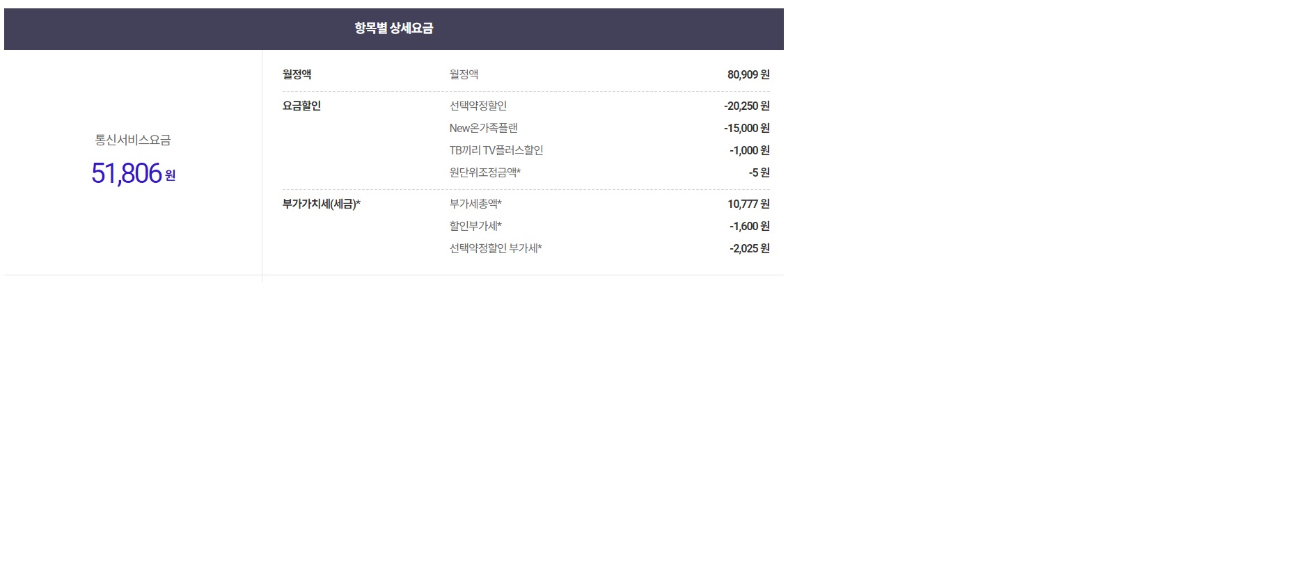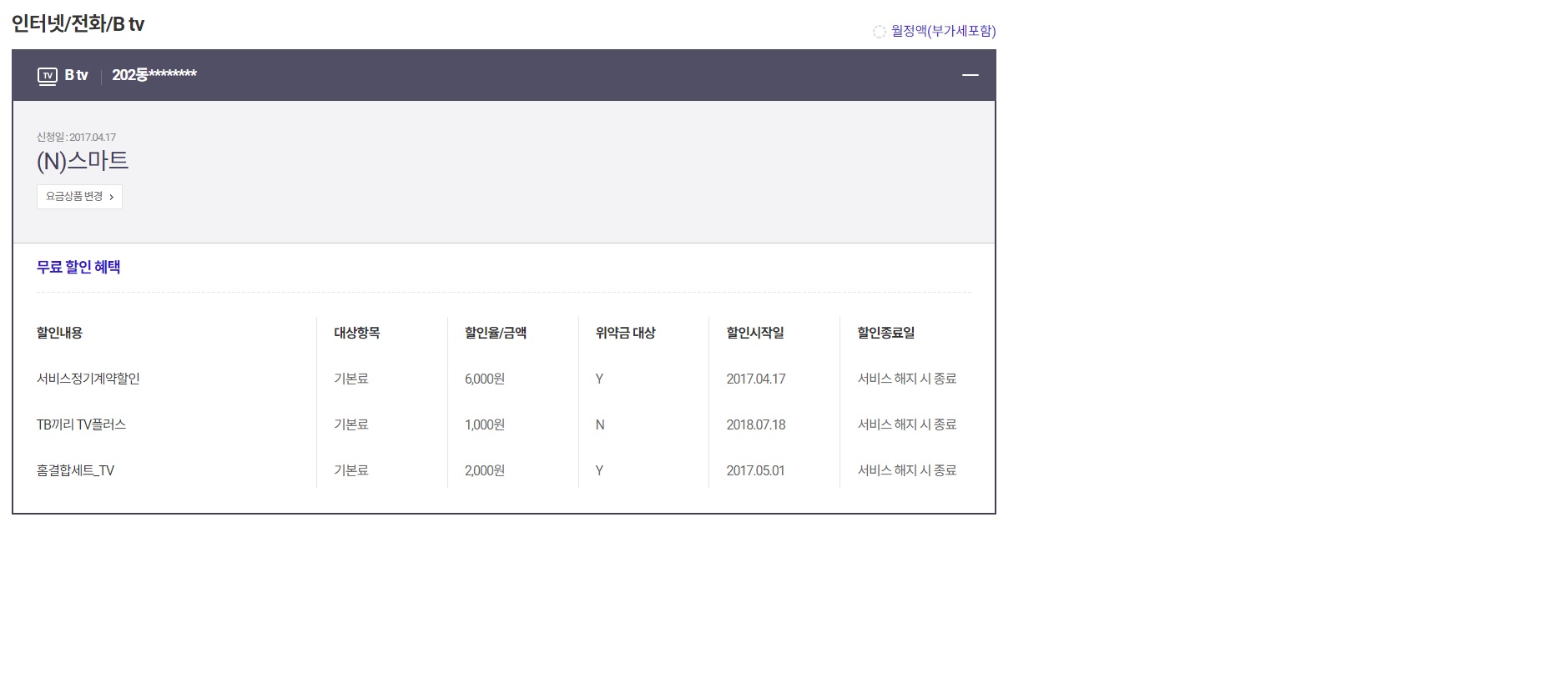 - TV요금 1,100원 할인