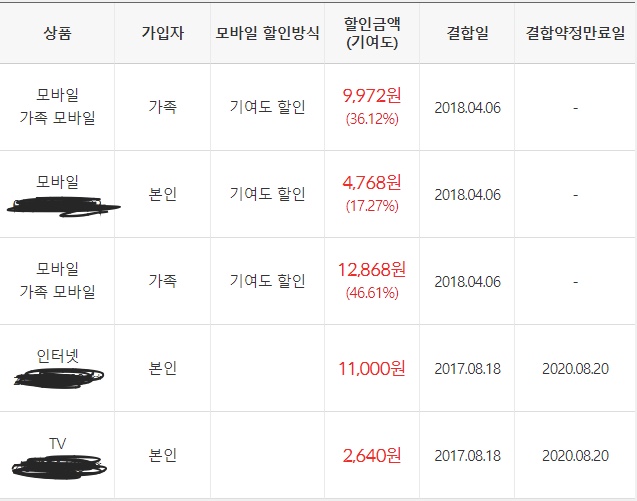 즉 휴대폰 없이 인터넷+인터넷 결합으로도 요금 할인을 받을 수 있지요 +_+