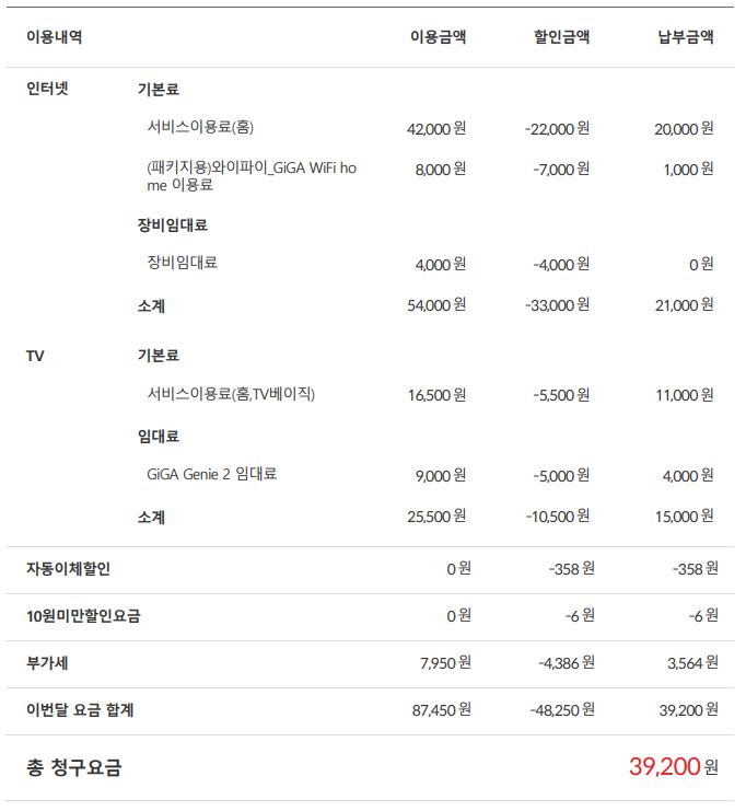 (와이프 명의로 인터넷가입은 따로없고, 처가식구와 휴대폰만 결합되어 있습니다.)