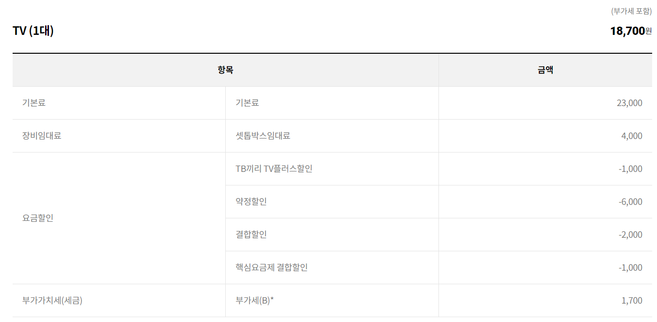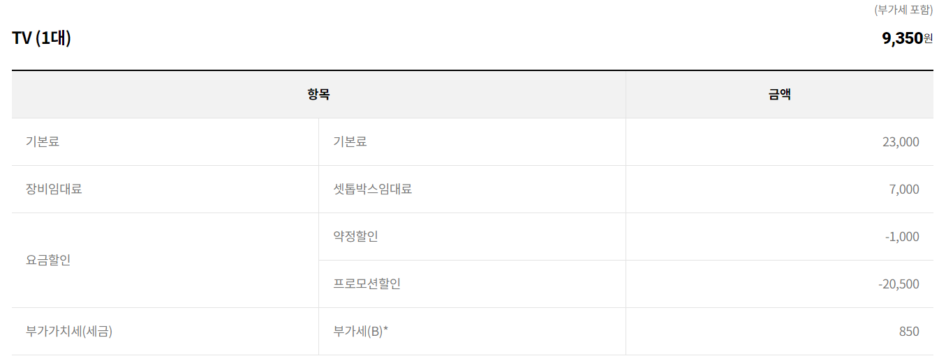 실상 할인이 적용되어 청구되는 요금은 추가TV 셋톱박스 요금이 더 저렴합니다.