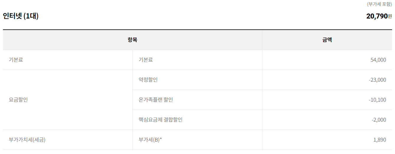 - 인터넷 요금 11,110원 할인