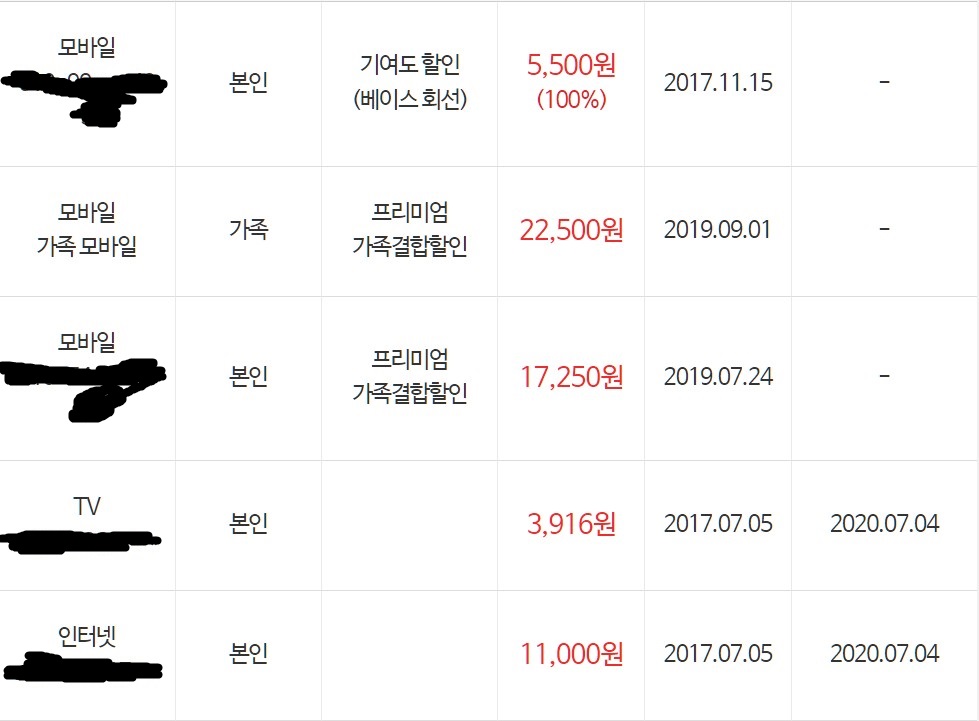인터넷은 베이직(500M) 사용 중이고 티비는 TV엔터에 TV슬림 사용중이고 프리미엄 가족결합 적용했습니다.