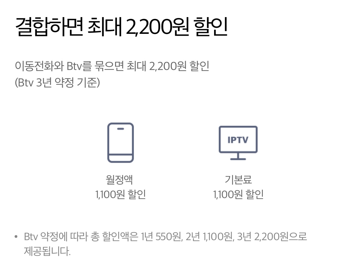 결합할인을 받는 덕분에 이미 월요금을 저렴하게 이용 중이셔서
