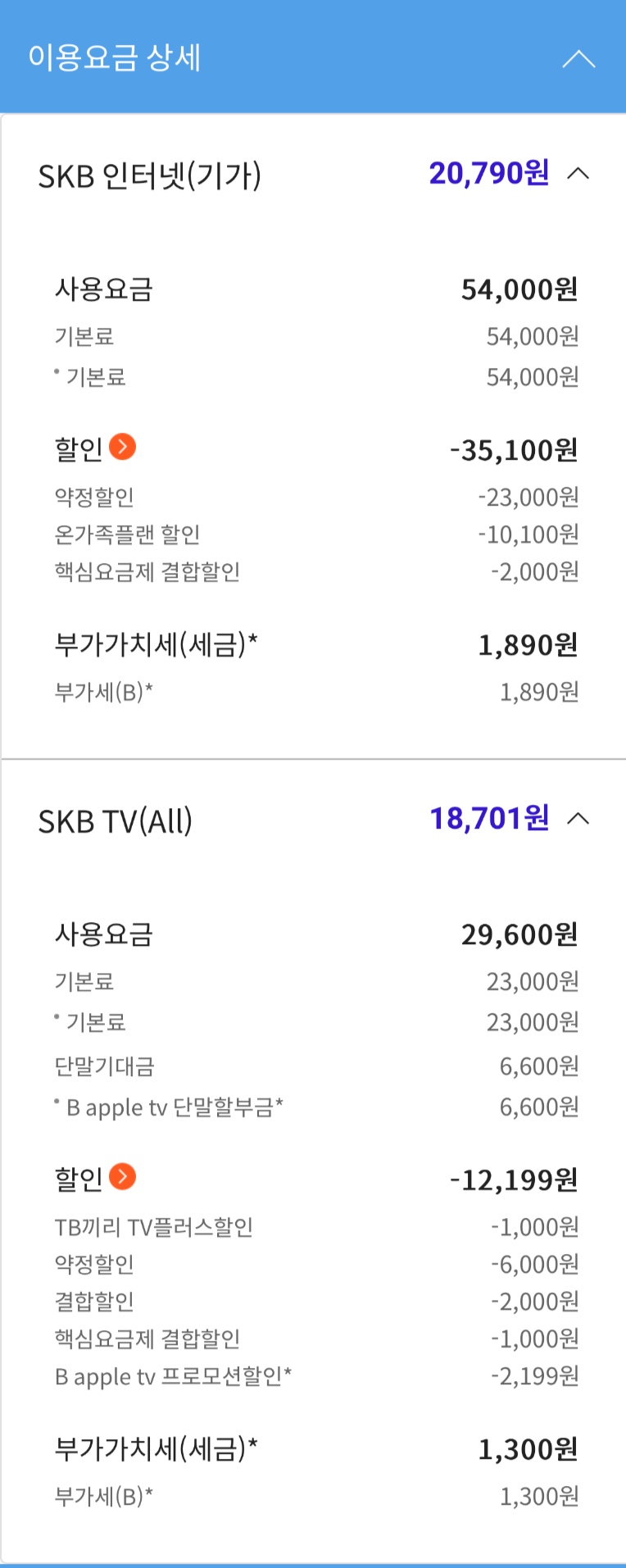 ㄴ 각각~~!! SK인터넷 + 티비 = 재약정 시,