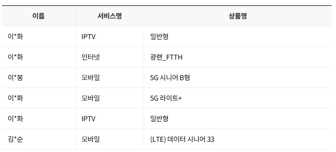 ✔️ 인터넷, TV 2대, 휴대폰 2대 총 요금은 126,100원