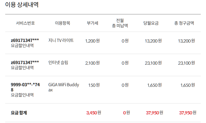 현재 KT 100메가 + wifi 공유기 2대 + 기본 IPTV 1대 = 월요금 37,950원인데요.