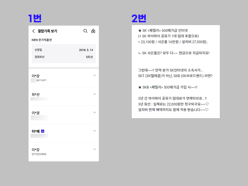 SK인터넷으로 가입하되 패밀리 할인을 적용하는 게 아닌