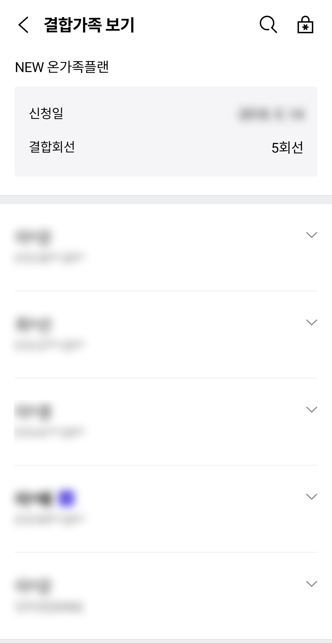2) 온가족플랜으로 묶여 있고 사진 보시면 5회선으로 뜹니다!