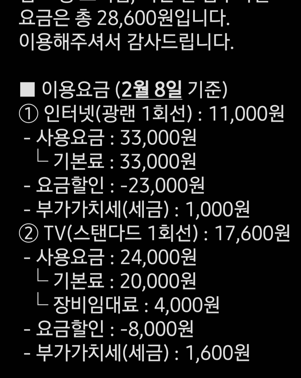 (물론~~!! 부가세까지 포함된 실 납부요금이구요~~!!