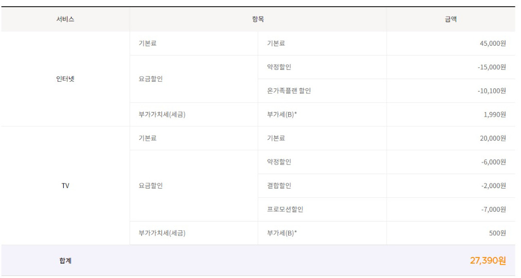 1) 우선 인터넷 요금에서 할인이 들어갑니다