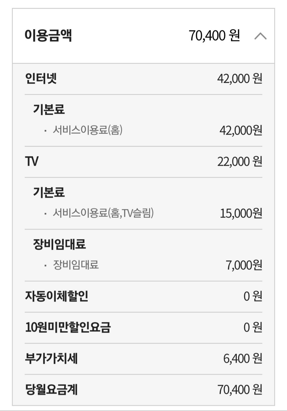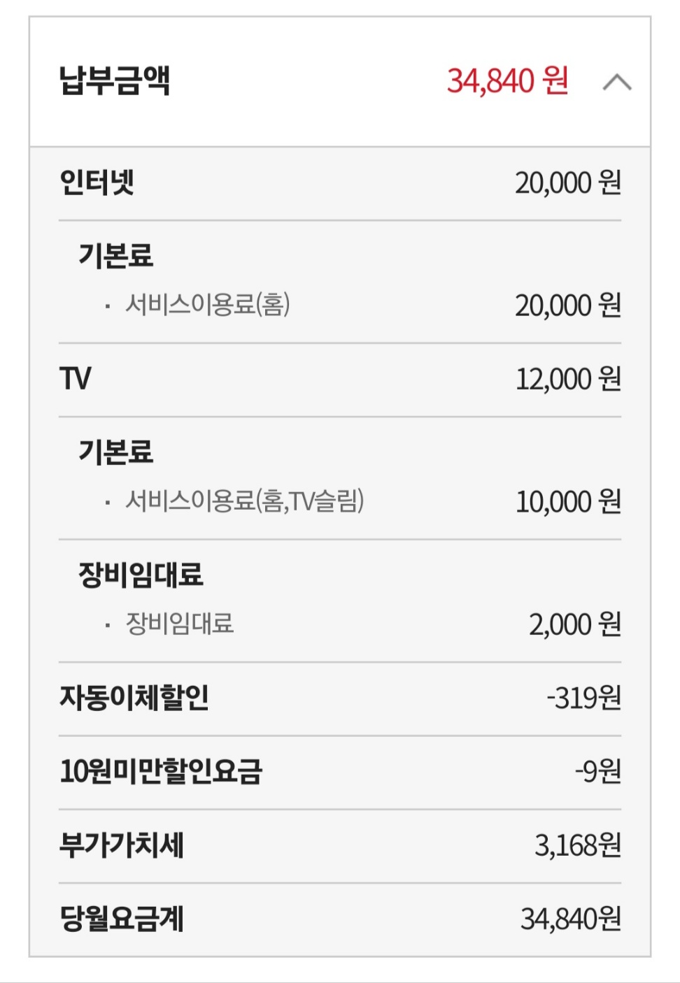 이용 금액은 아래와 같습니다.