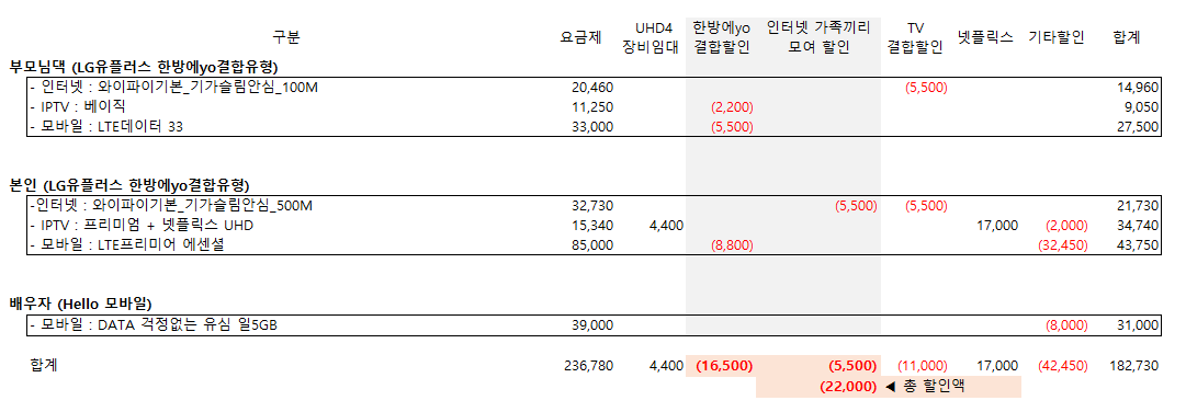 (혼인신고는 하지 않았기에 아마 결합으로 인한 이득보다 알뜰폰 사용이 더욱 메리트 있을 것으로 생각되는데,