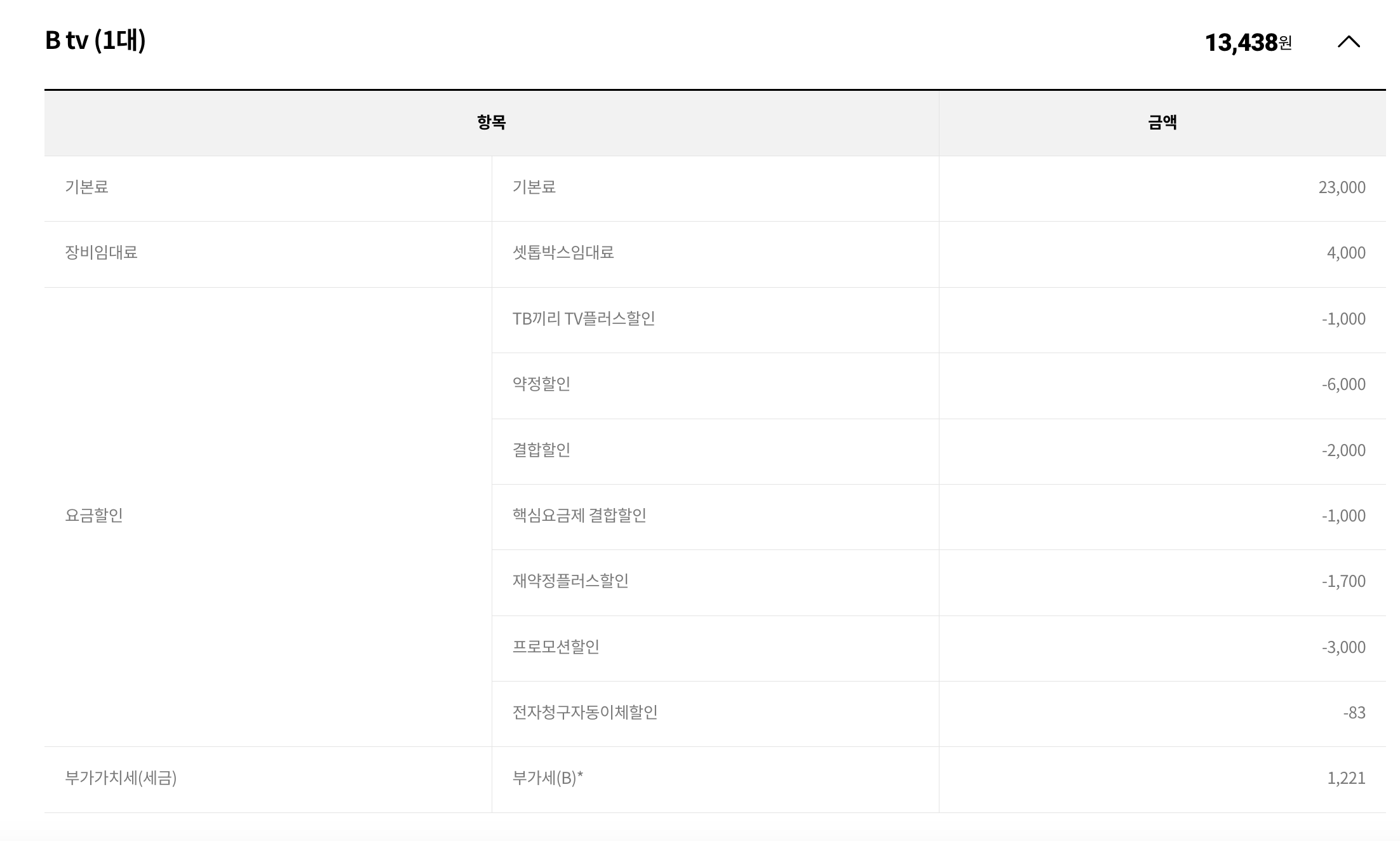 TV요금제(채널)와 셋톱박스 조합으로 이루어져 있습니다.