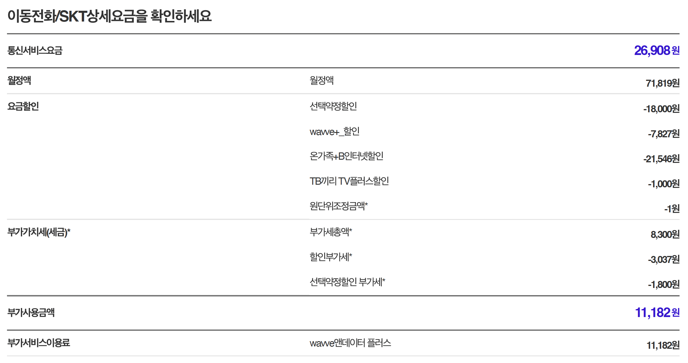 제가 사용하고 있는 휴대폰, IPTV, 인터넷 정보는 아래와 같습니다.