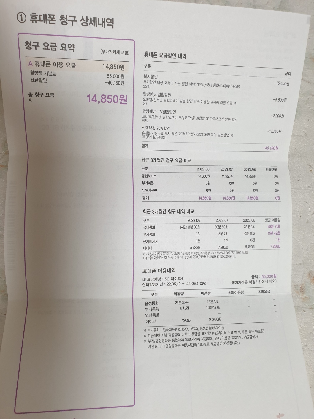 요금 할인을 더 받으시는 건 비효율적이네요..!
