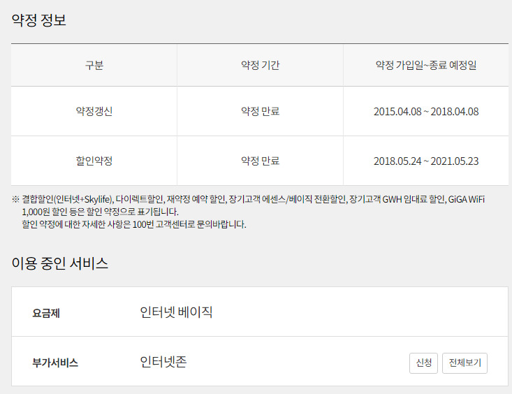 약정은 15년, 18년쯤에 공식콜센터로 해지방어 식으로 해서 연장했었는데... 21년부터는 귀찮아서 그냥 내비뒀습니다. ㅠㅠ
