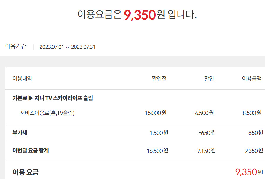 본래 요금은 27,500원을 납부하고 계셔야 정상입니다.