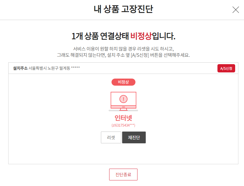 만약 이후에도 동일한 증상이 나타난다면 KT본사 고객센터(국번없이 100)으로 장애신고를 해주세요