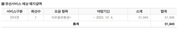 정확한 위약금은 지금 받고 계신 혜택과 서비스에 따라 크게 차이가 나기 때문에