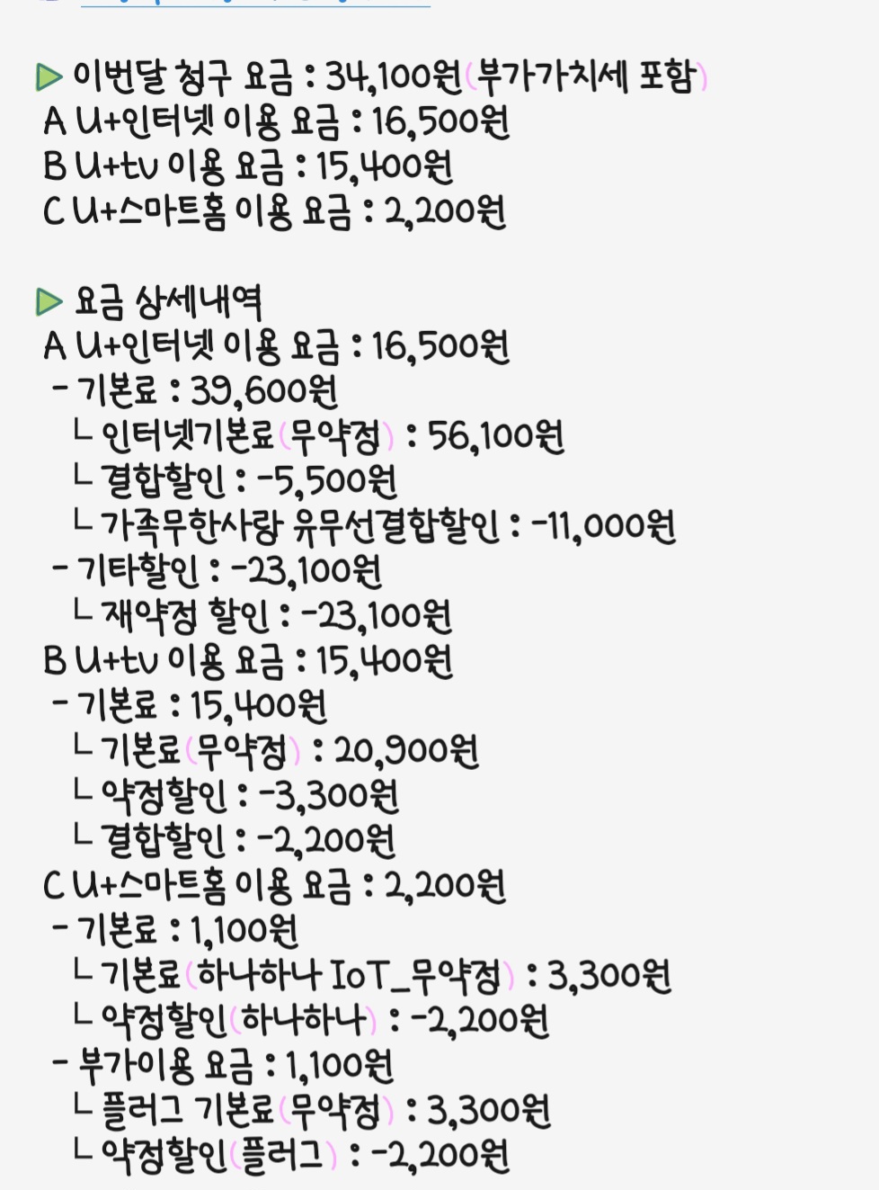매월 든든한 (총합 약 3.3만원) 할인을 받고 계신데요!!