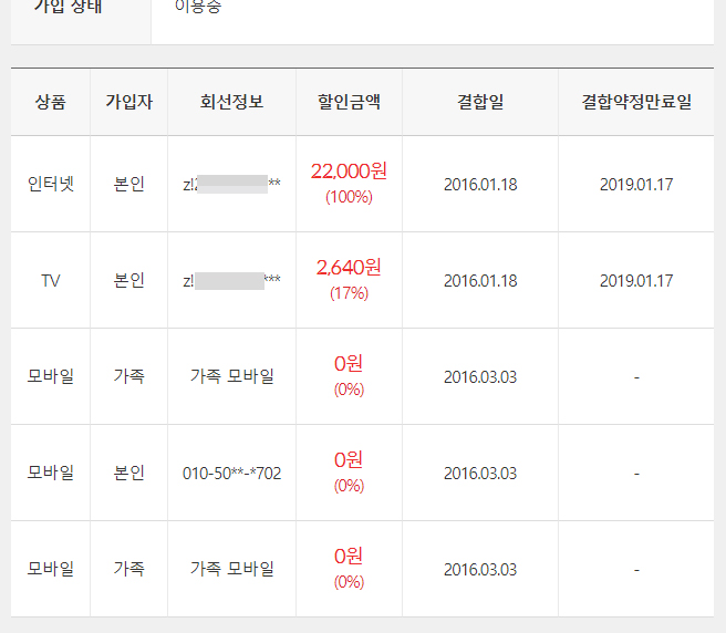 가입정보 : "KT 인터넷 뭉치면 올레(결합유형=TV+인터넷+모바일)"