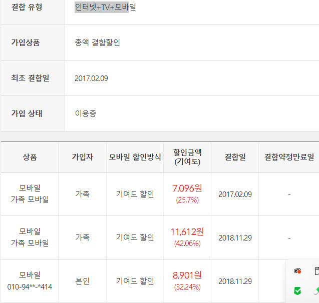 좀 더 여쭤보고 싶은게 있는데, 제가 kt 인터넷+핸드폰+tv+가족할인까지 결합하여 할인 받고 있는데,