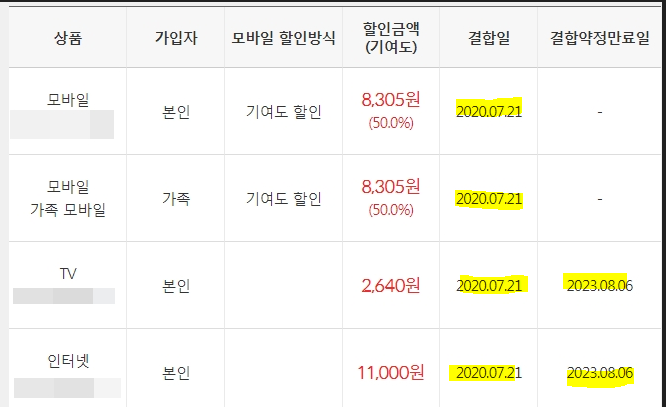 결합 할인 혜택이 이중으로 적용되지는 않습니다요;;;)