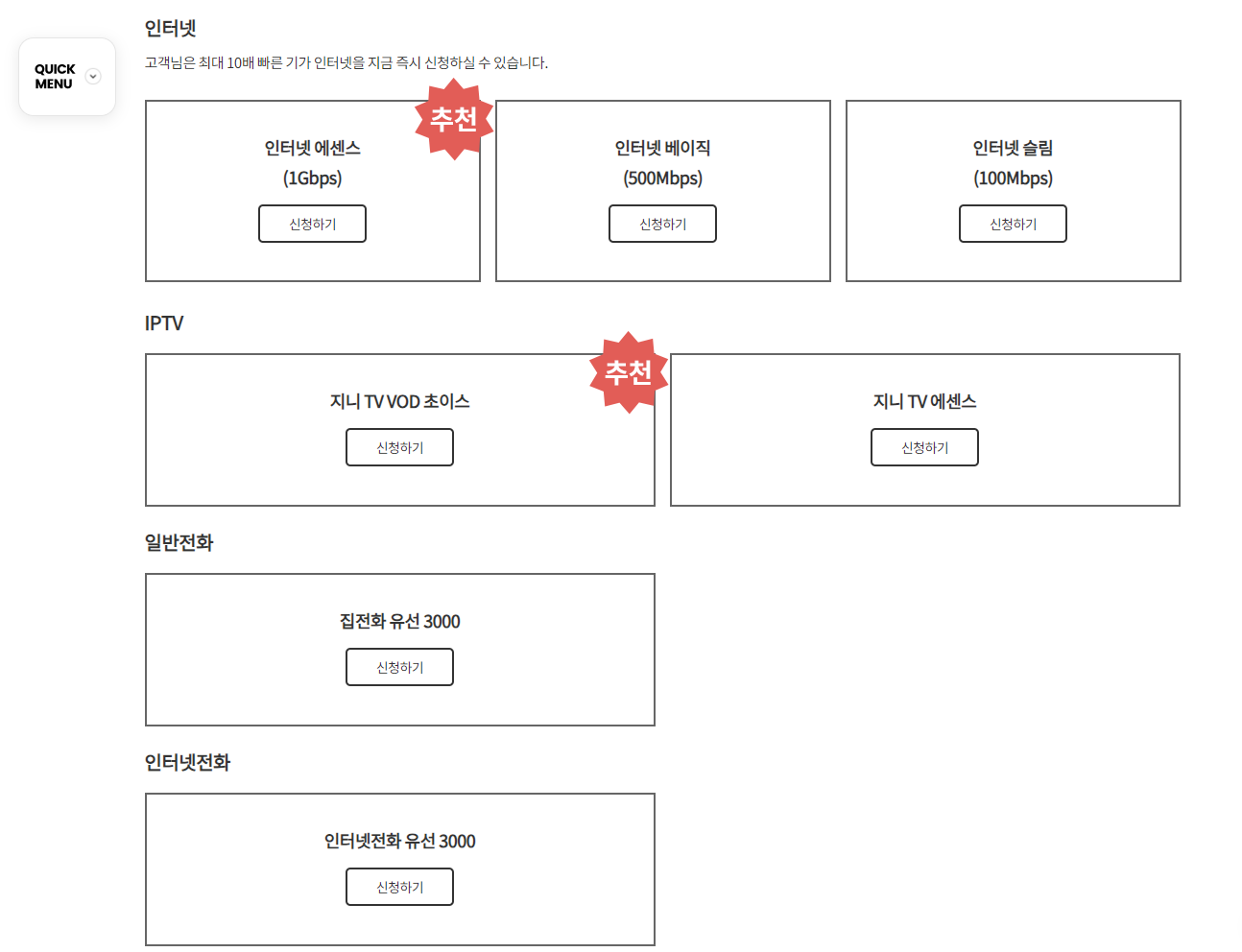 전화 상품 가입이나, 와이파이 공유기 임대까지 함께 신청하실 수 있지요~!^~^*