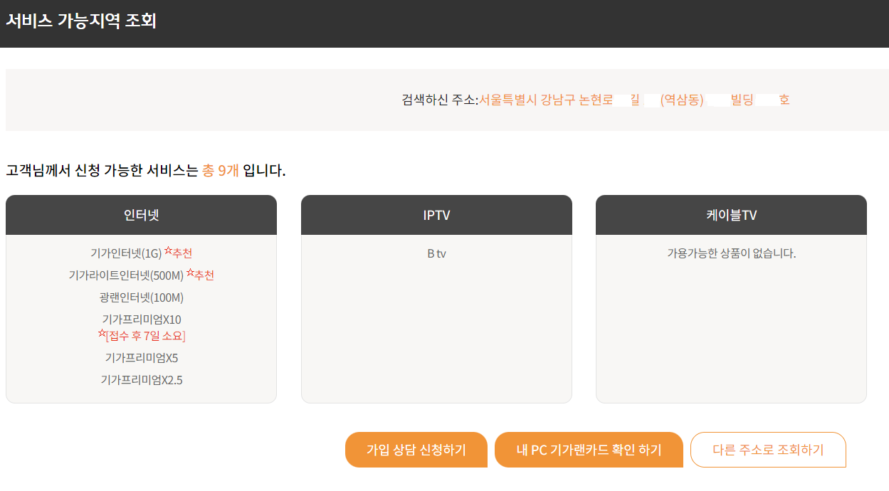 주소지를 skt/kt FTTP 조회해보니 지원가능하다고 나오네요.