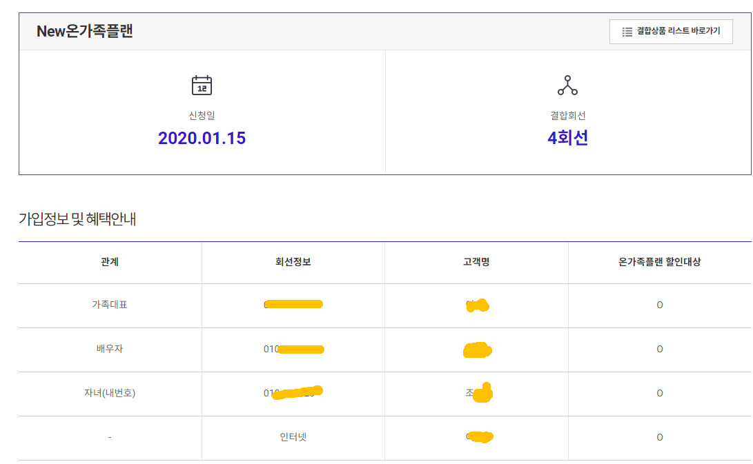 1. SKT 가족결합으로 저포함 3대회선+부모님댁인터넷 이렇게 결합이 되어있는데
