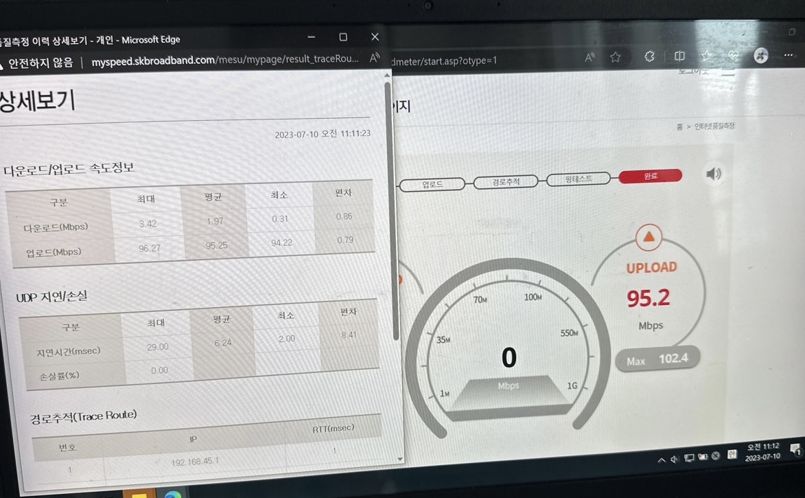 헛~ 사진에 띄워주신 인터넷 속도가 너무 처참하네요 ㄷㄷ
