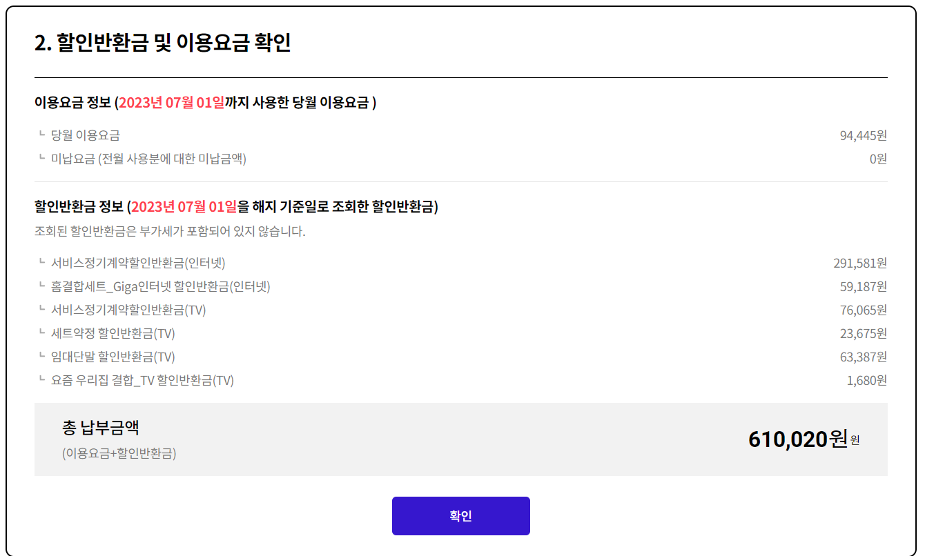 "해지 위약금을 확인하던 중 23년 7월 1일까지 사용한