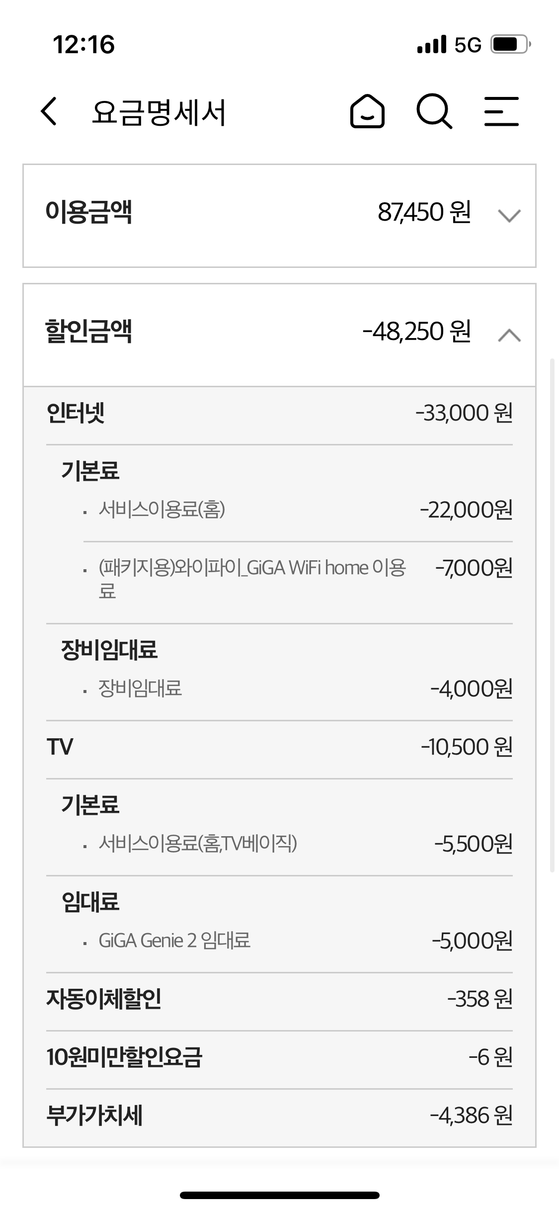 이게 매달 나가는 할인 적용된 비용입니다!