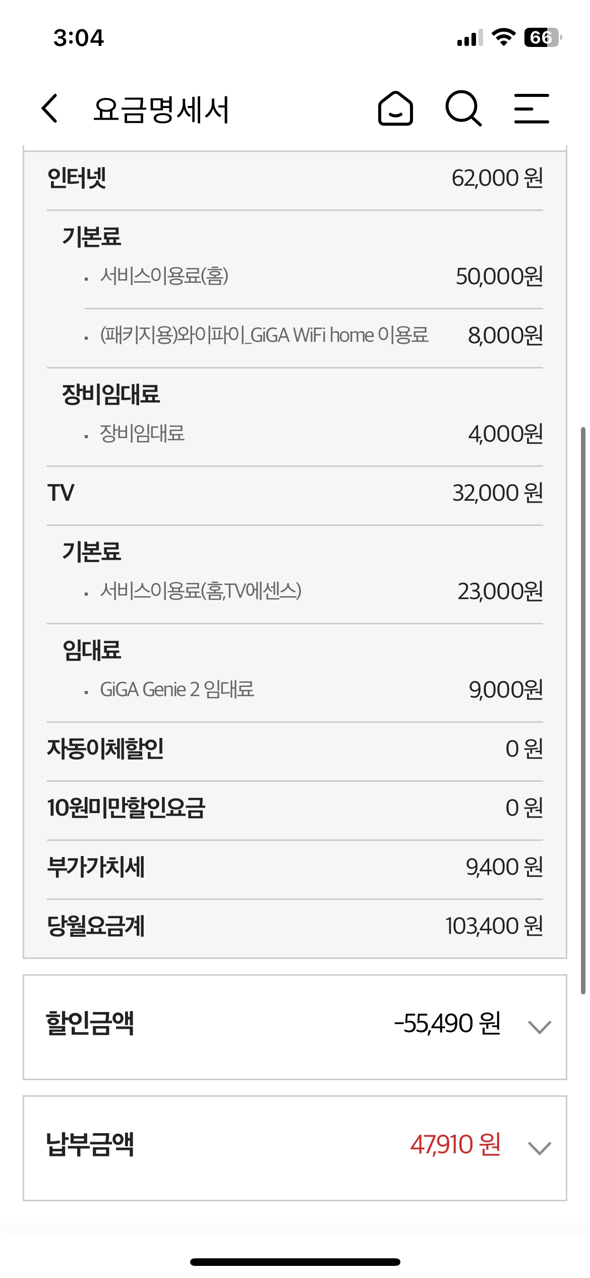티비+인터넷 약정이 끝나서