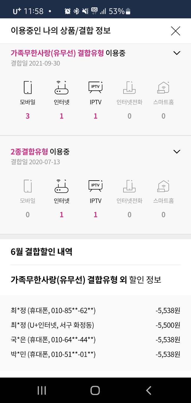 3) 장모님은 가족무한 사랑으로 함께 할인받고 있어요^^(마지막 사진캡처)