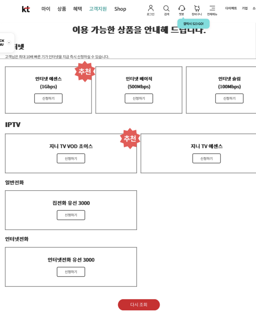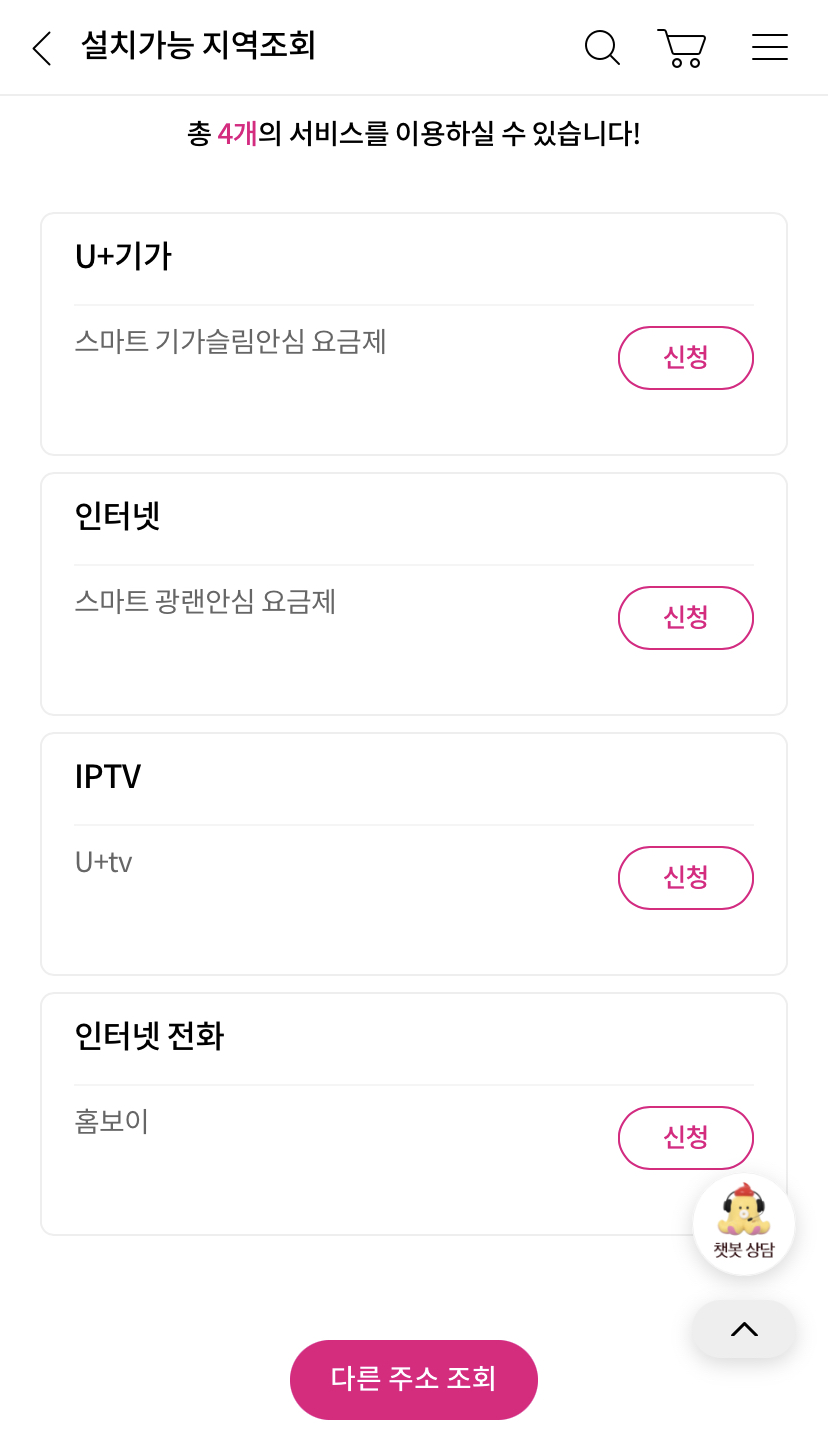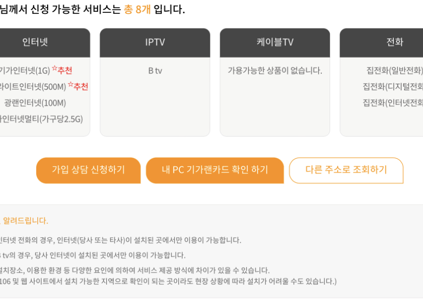 Jun_Park님께서 3사 통신사 홈페이지 통해 설치 가능 상품을 체크하셨지만