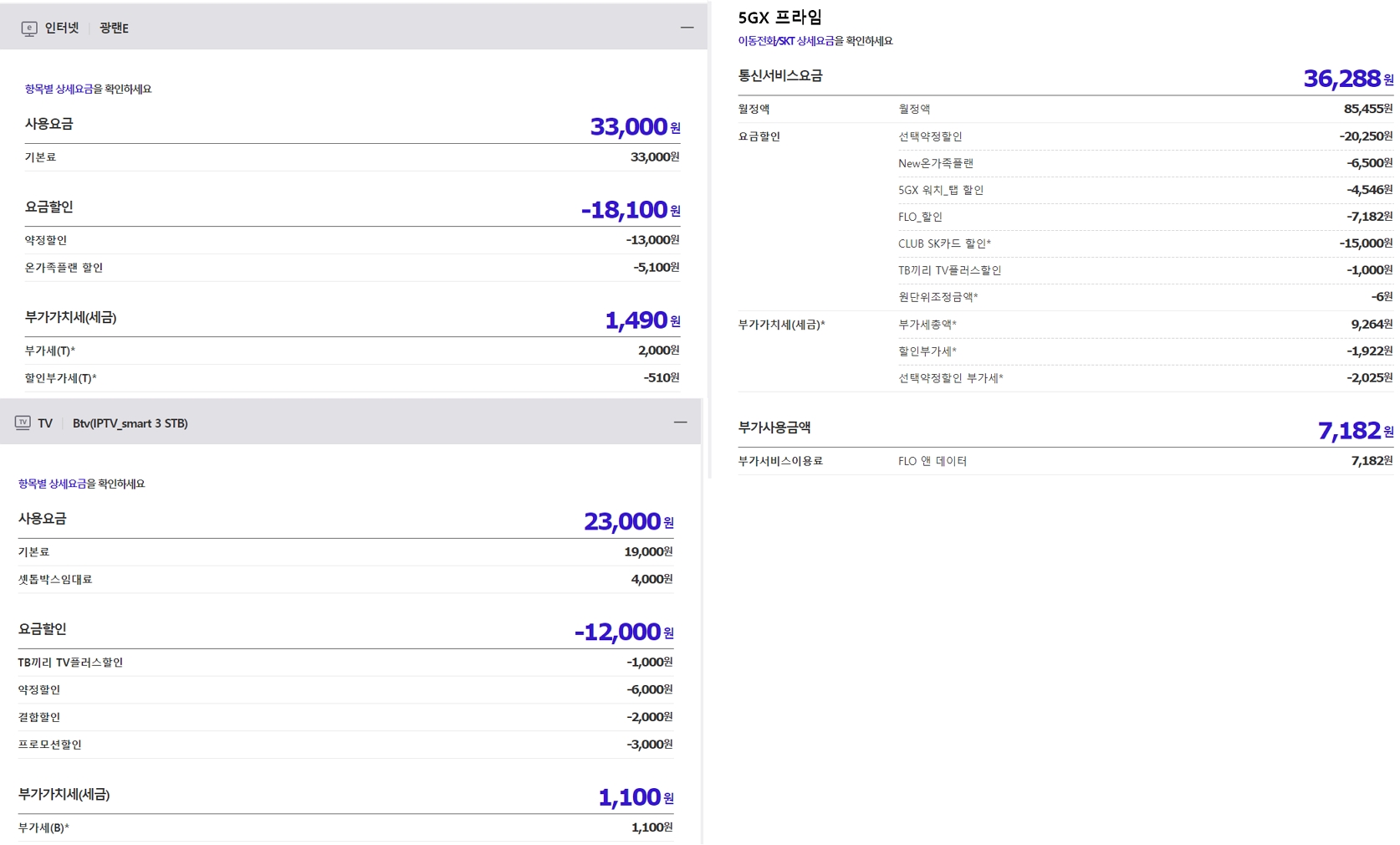 SKT 휴대전화(2회선)와 인터넷 + TV를 사용하고 있습니다.