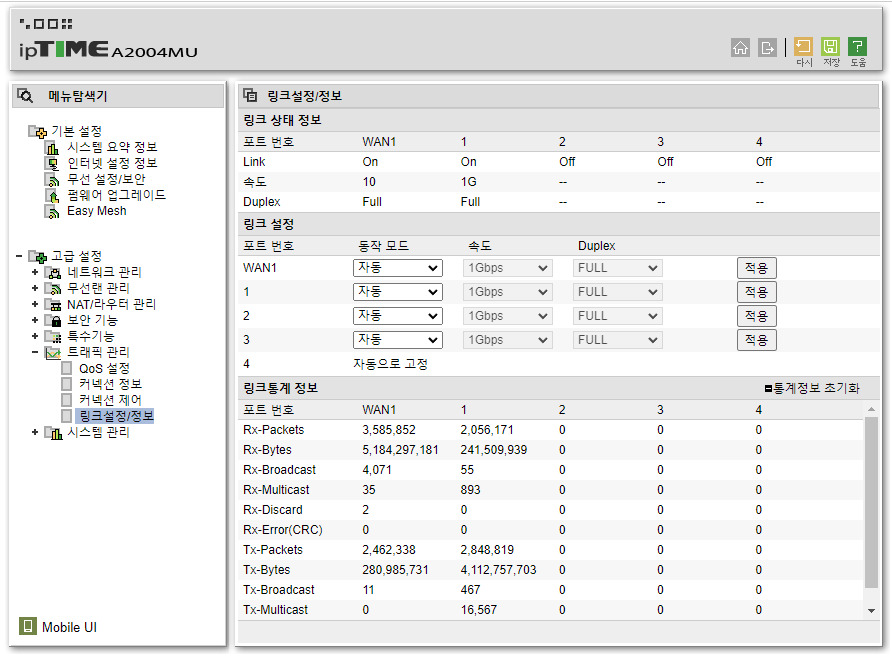 인터넷 속도가 갑자기 느려져서 확인 해봤더니 wan1 속도가 10이 나오는데 이거 왜 그런걸까요?