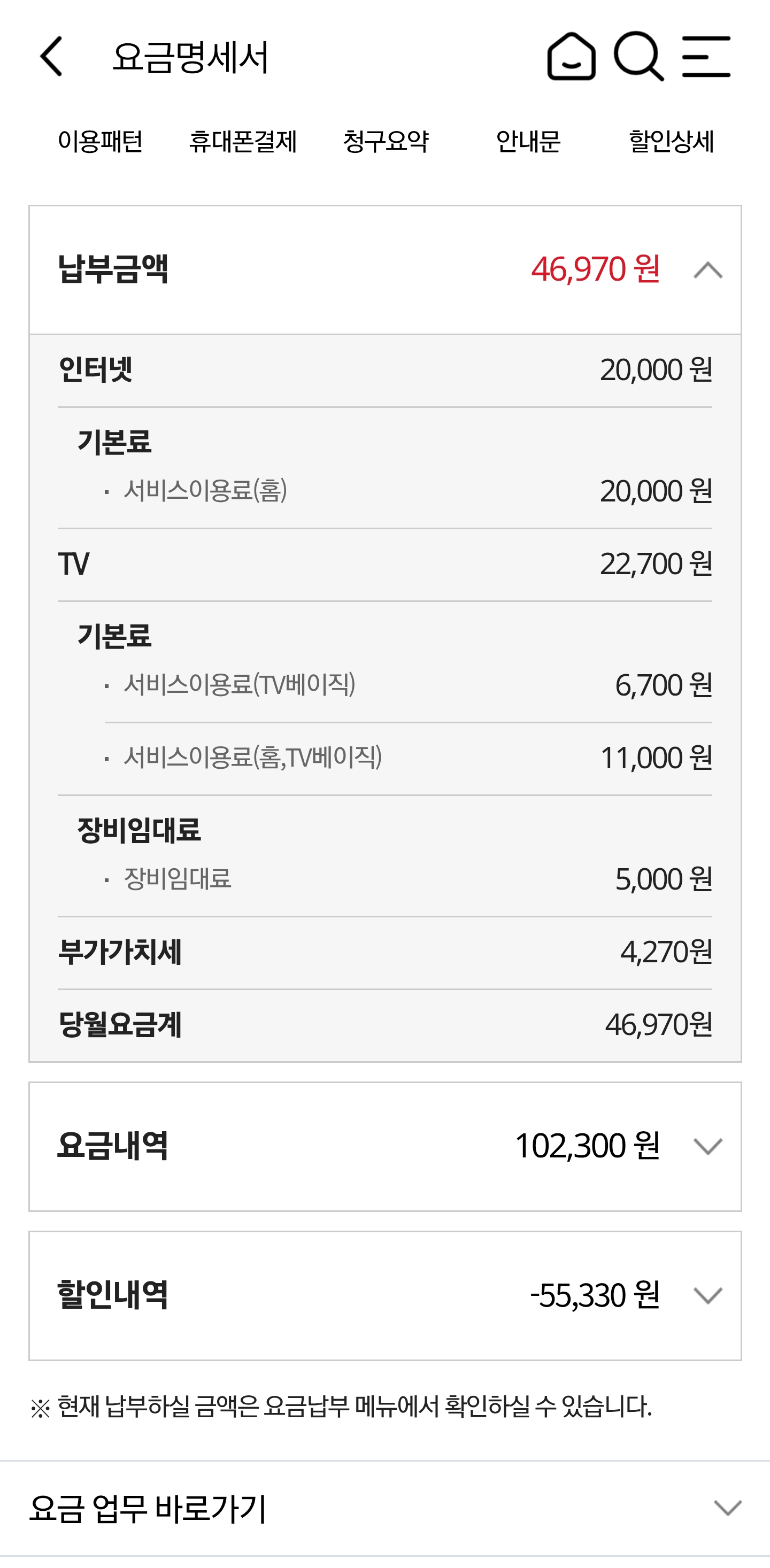 혹시 패밀리 결합 할인 등이 적용되어 있거나,
