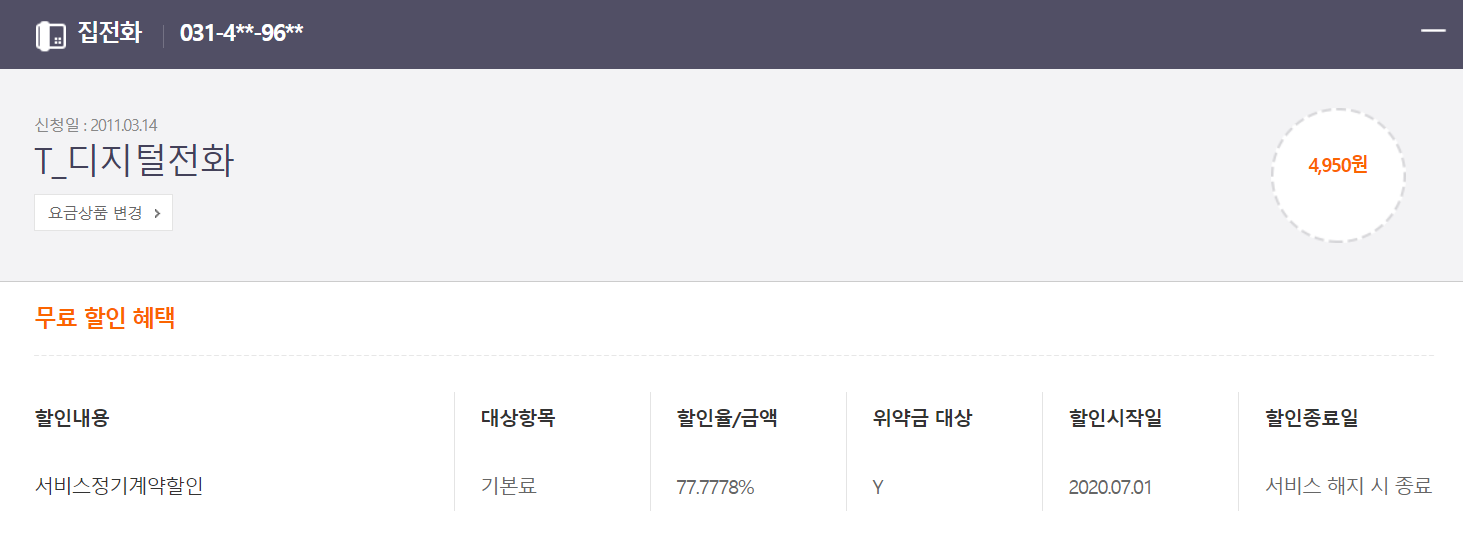 첨부해 주신 이미지만으로는 집전화의 약정기간이 만료되었는지 확실치 않아