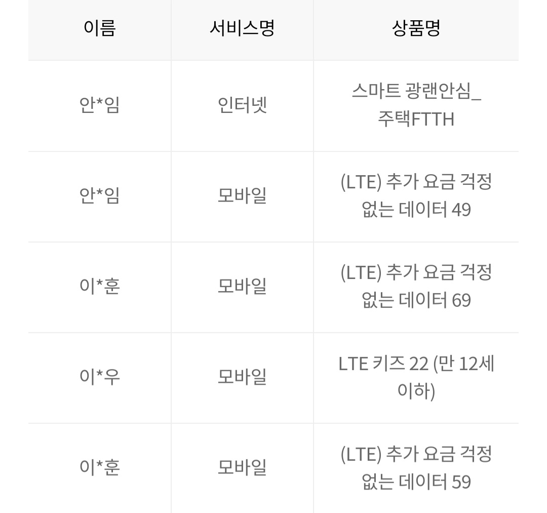 저희집 LG유플러스 모바일 이*훈2 이*우1