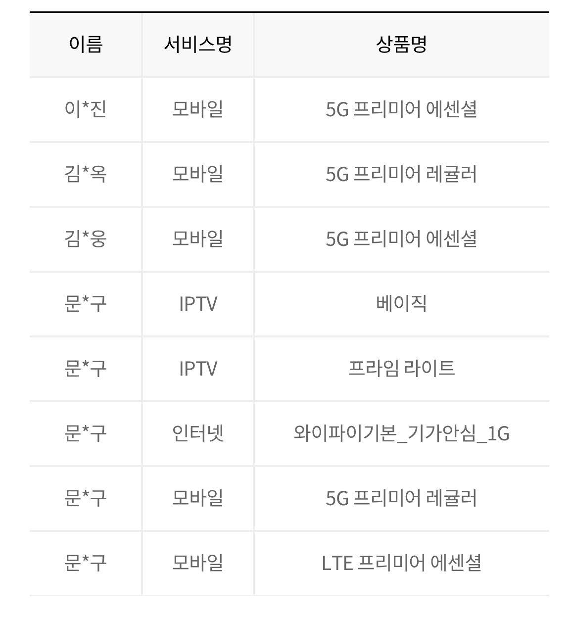 여기에 LG휴대폰 5회선을 모두 결합 중이시군요~?!