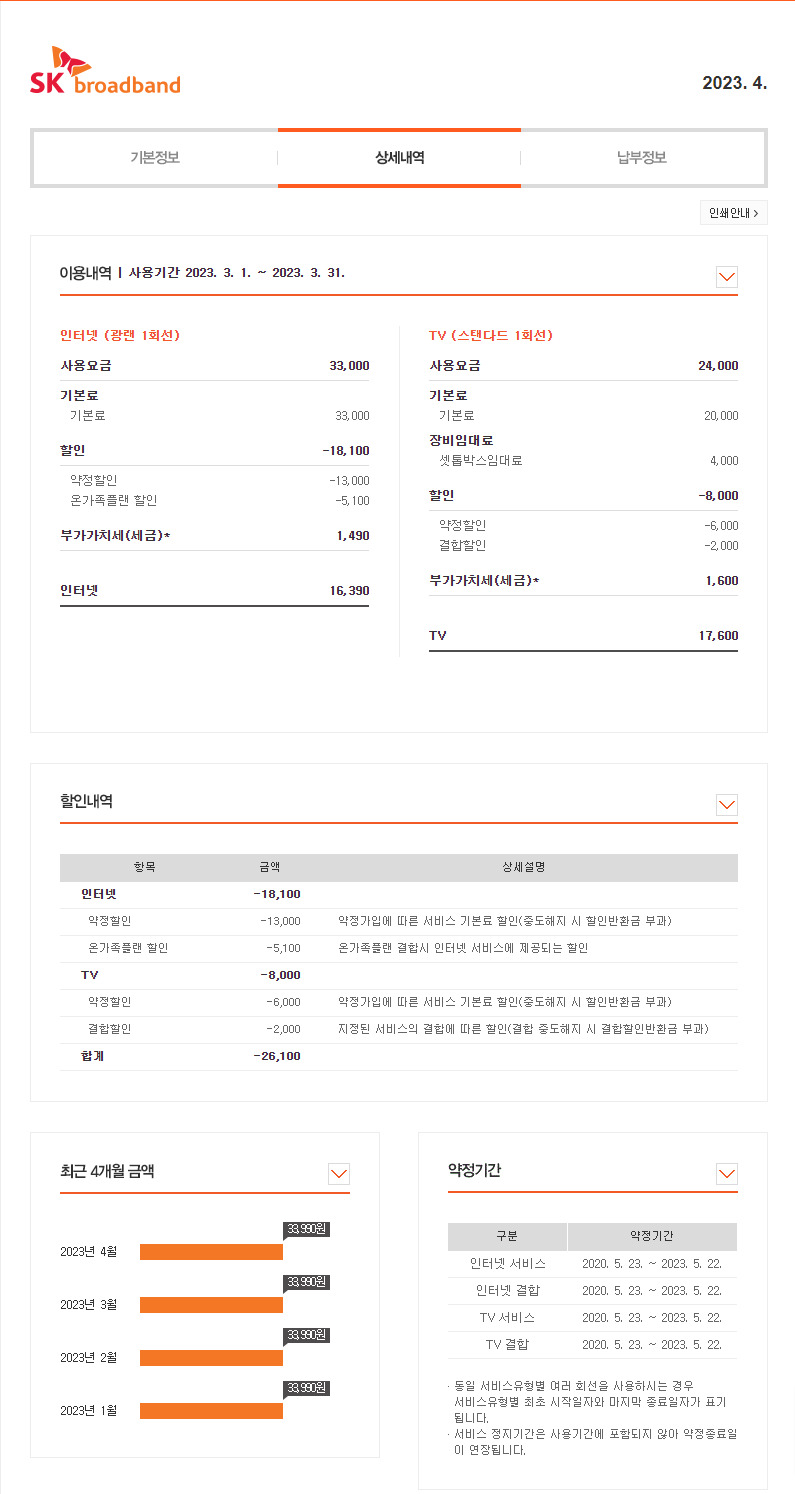 - 추후, 타 인터넷 신규시 결합회선 : 2회선(글쓴이, 배우자)